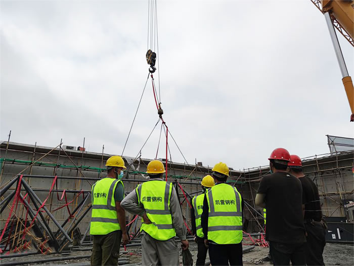 6.为确保.北流加油站球形网架安装顺利,应有详细的北流施工组织设计。网架安装必须保证结构的稳定性和不产生的附加变形。