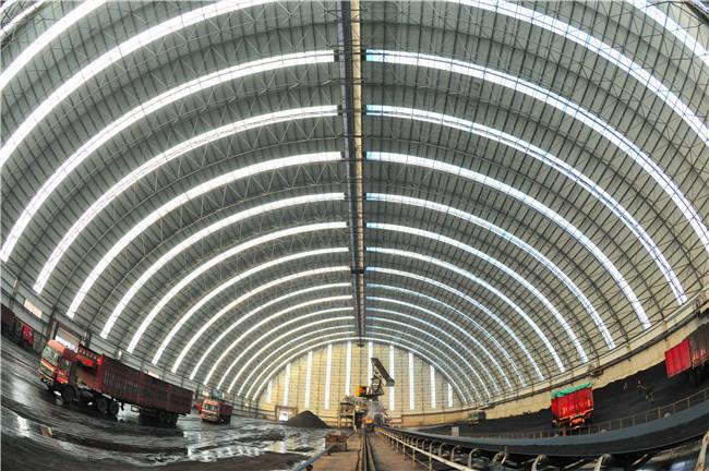 堆场料场封闭式主体结构为新型的钢北流网架结构,维修结构为北流钢结构北流不锈钢板和纤维增强塑料灯具,其外形以北流网架式和平板为主,连接柱北流施工自由,设置喷雾自动喷水系统,从而可以实现棚内所有物料的覆盖,减少物料在运输过程中的损耗,起到防尘的作用,减少工厂关闭后的二氧化硫排放量,50mg/m3颗粒排放量小于10mg/m3,非常适合低能耗。低闭库自动感应反应对库存轮胎进行清洁,确保轮胎不受道路污染;封闭的储存区可从源头控制粉尘污染,控制无序排放。